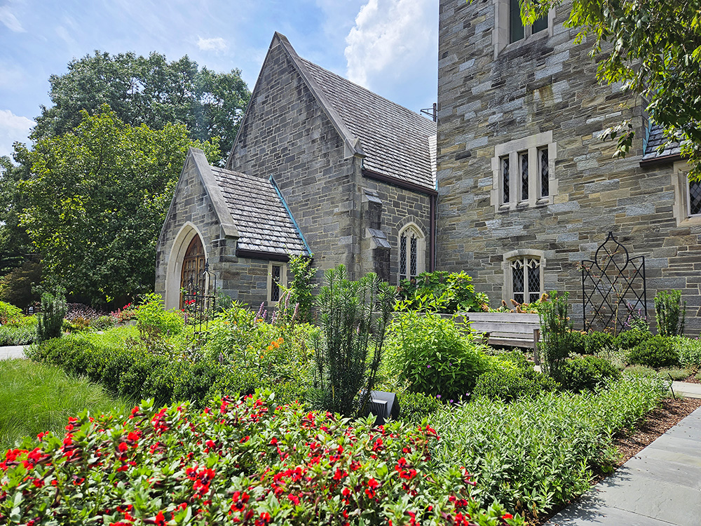 The Chapel of Peace garden was designed by Landscape Architects Stacey Hayes-Nash and Karen Steenhoudt as a multi-phased garden renovation around our historic chapel. Phase I was completed in 2021 and features a formal English-garden aesthetic with modern plant selections that provide beautiful foliage and floral displays throughout the season. Phase II was completed in 2022 and features a winding path through a massed perennial border plantings joining the chapel to the Mausoleum of Peace.