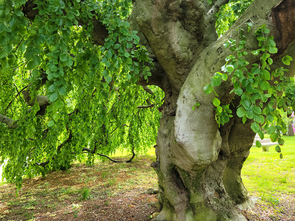 On a small island of Laurel Hill West’s Franconia section is a state champion weeping European beech tree. What makes this tree so incredibly huge is the 15-foot girth of its trunk, measured below the lowest branch. The canopy of this weeping tree reaches to the ground forming a shady room in the summer. The smooth bark and twisting, contorted branches are equally beautiful throughout the winter. Enjoy this massive elephant-like tree all year round.