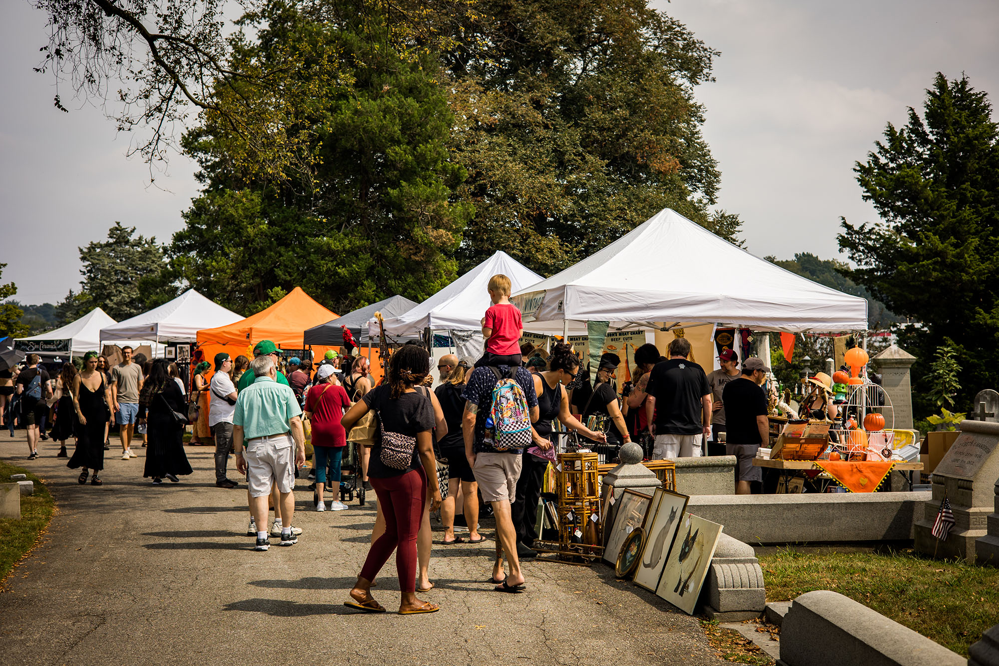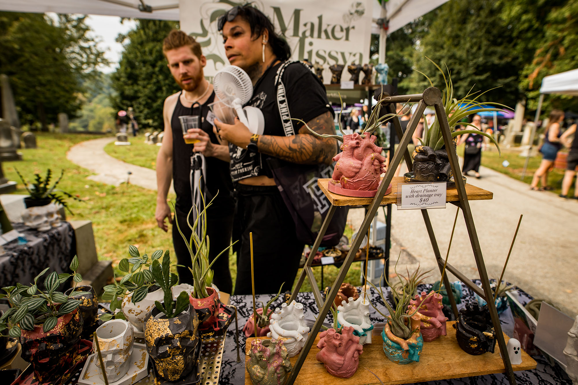 Peruse amongst historic tombstones for handmade items, assorted oddities and taxidermy, antiques, jewelry, spiritual goods, clothing, original artwork, and more.