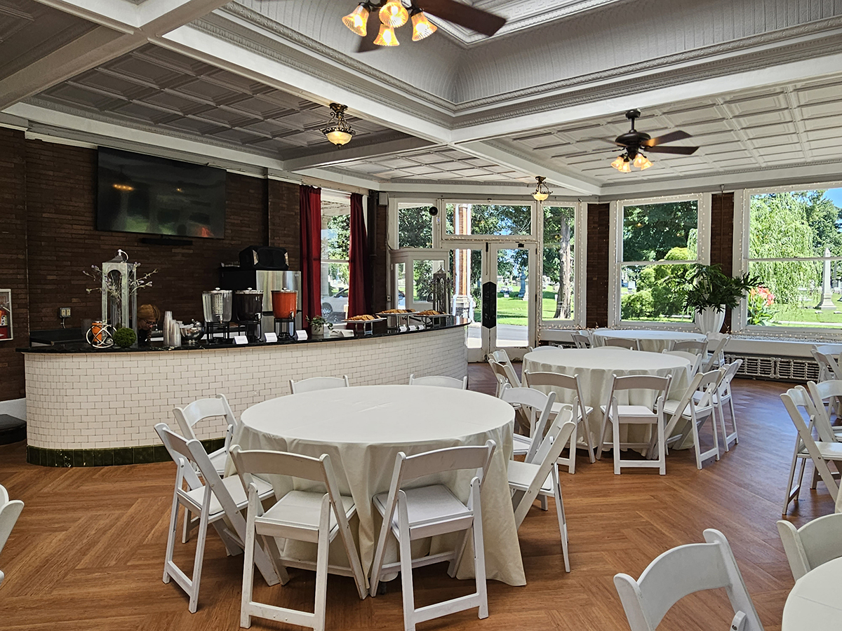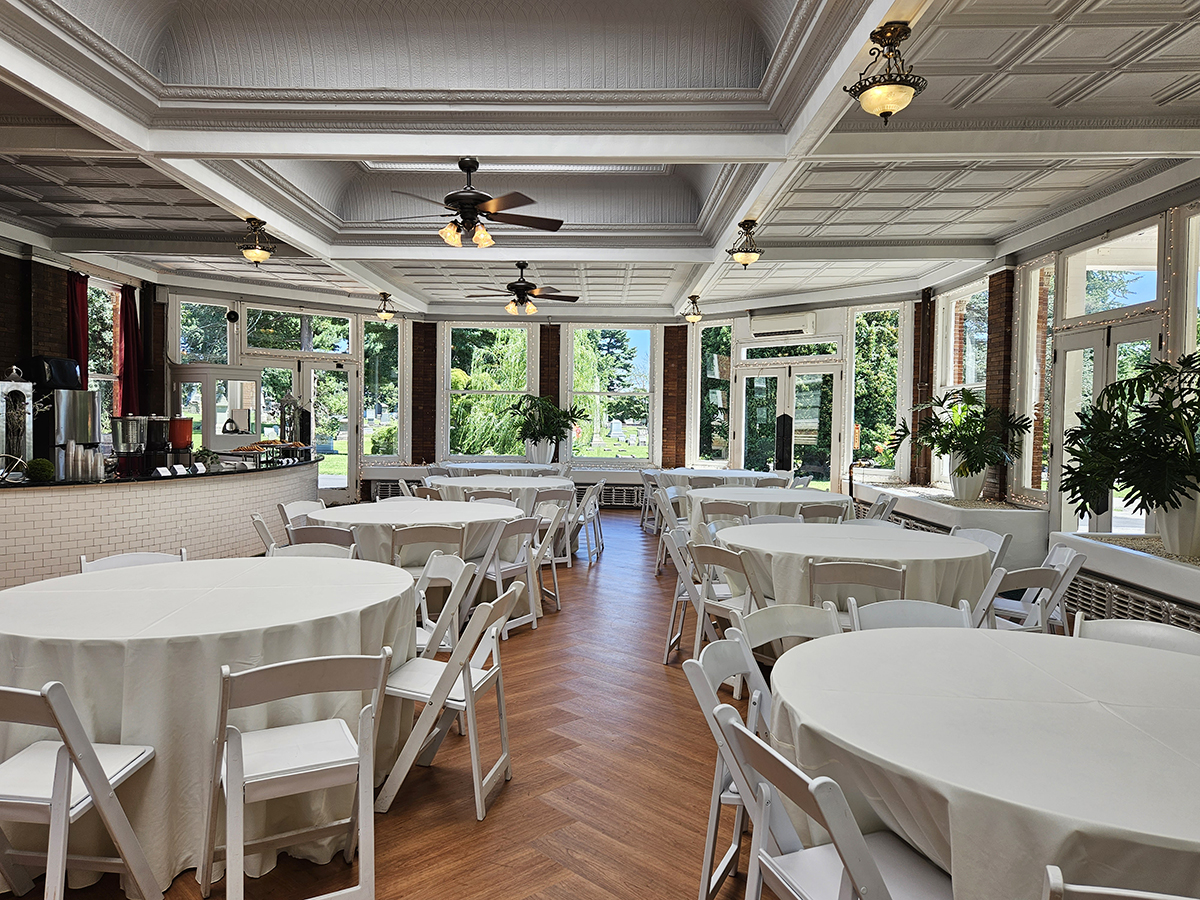 • For a more intimate gathering, the Atrium inside of Laurel Hill Funeral Home, seats up to 40 guests.