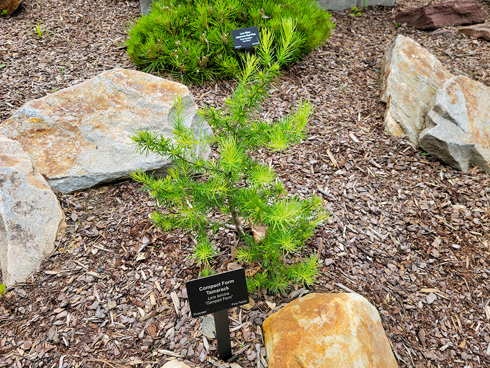 Laurel Hill East’s small garden features a collection of “dwarf” and “miniature” conifers. Unlike large coniferous trees and shrubs, dwarf conifers grow only 1-6 inches per year and miniature conifers grow less than 1 inch per year.
